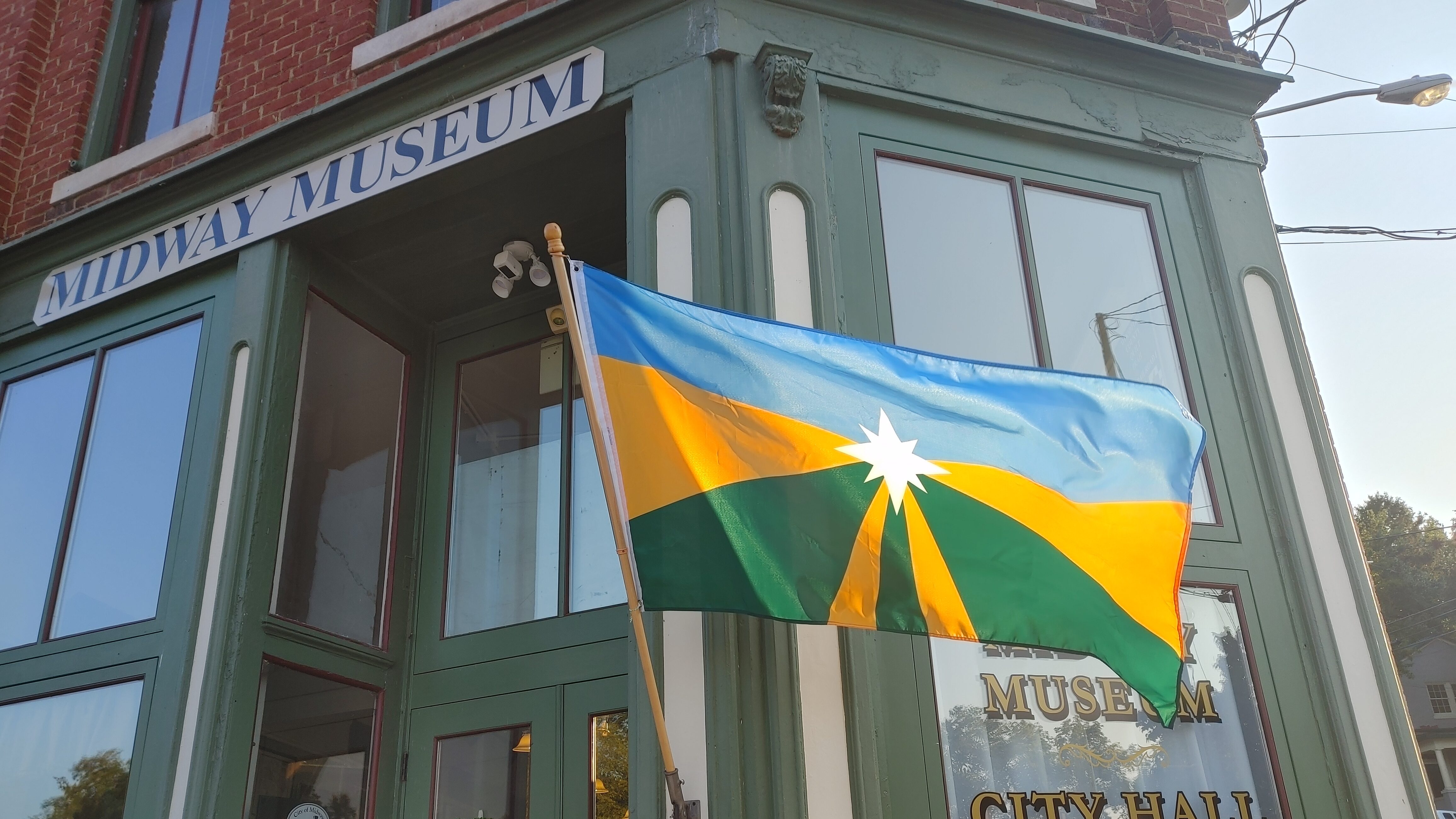 Our town’s newest symbol for civic pride, the Midway flag was adopted December 5th, 2022 after a winning a city-wide vote.